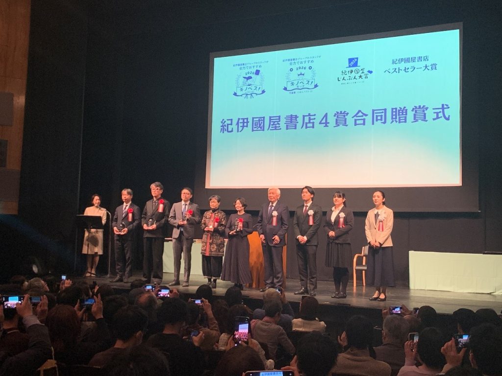 株式会社 紀伊國屋書店(代表取締役会長 高井昌史)はこのたび、スタッフが自信を持っておすすめする30冊の本を選ぶ「キノベス!2026」、児童書・絵本ベスト10を選ぶ「キノベス!キッズ2026」、読者の皆様とともに優れた人文書を選ぶ「紀伊國屋じんぶん大賞2026」、売上額をはじめとして紀伊國屋書店に貢献いただいた著者・出版社を表彰する「紀伊國屋書店ベストセラー大賞」の各賞贈賞式および、『世界99』で「キノベス!2026」第1位に輝いた村田沙耶香さんのトークイベントを2月24日(火)18時半より新宿本店紀伊國屋ホールにて開催いたしました。